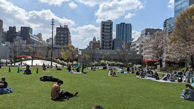 もともとちょっと治安の悪かった池袋駅前が、きれいな芝生広場になったことや、カフェが併設されていることなど、オープン時には話題になった公園ですが、とてもきれいな状態で利用されているのですね。